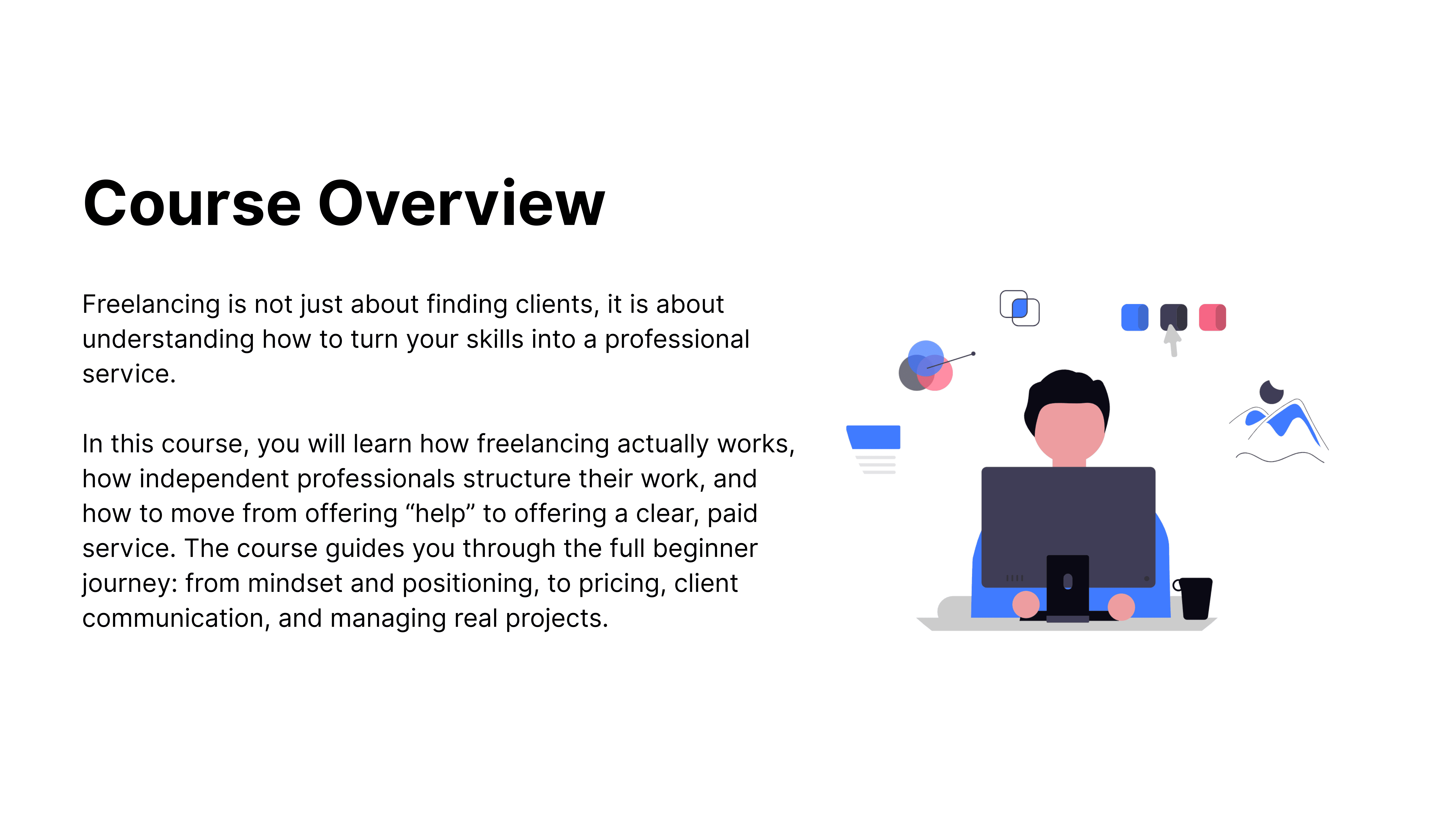 Congratulations on enrolling in this course! By the end, you'll have the confidence and skills to turn your passion into profit, and you'll have a clear path to generating a sustainable income using your unique talents.